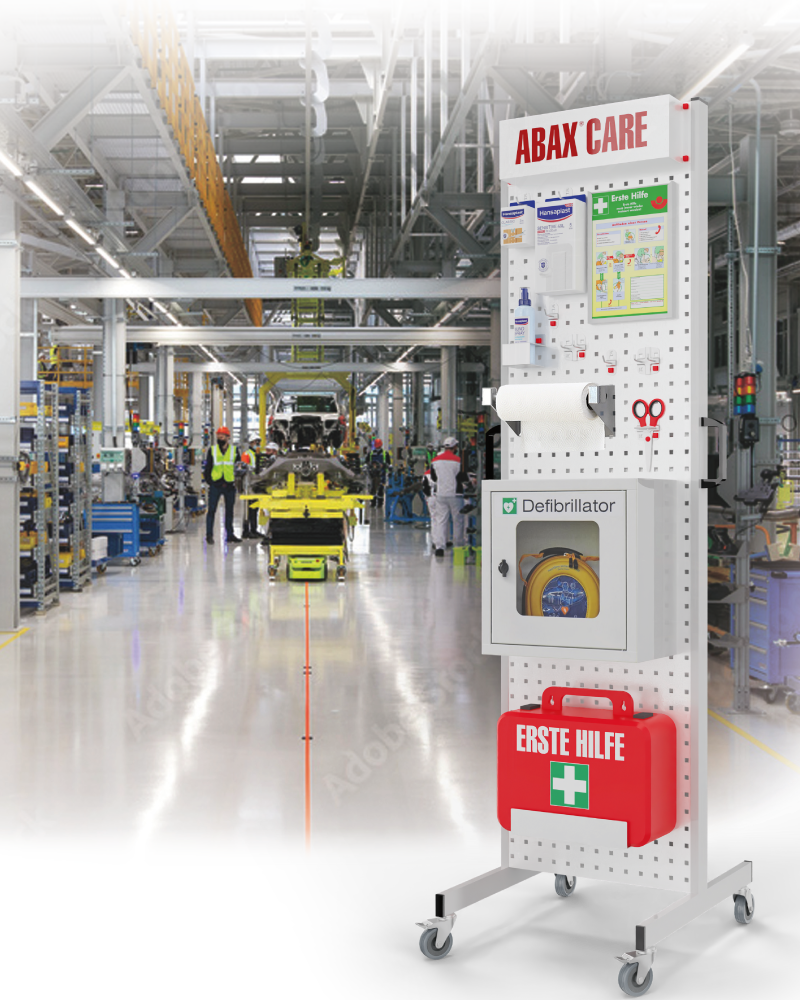 In Fabriken mit weitläufigen Anlagen kann das mobile ABAX® GUARD-System direkt zu den Maschinen gebracht werden. Alternativ sorgt die stationäre Version für dauerhafte Ordnung vor Ort.